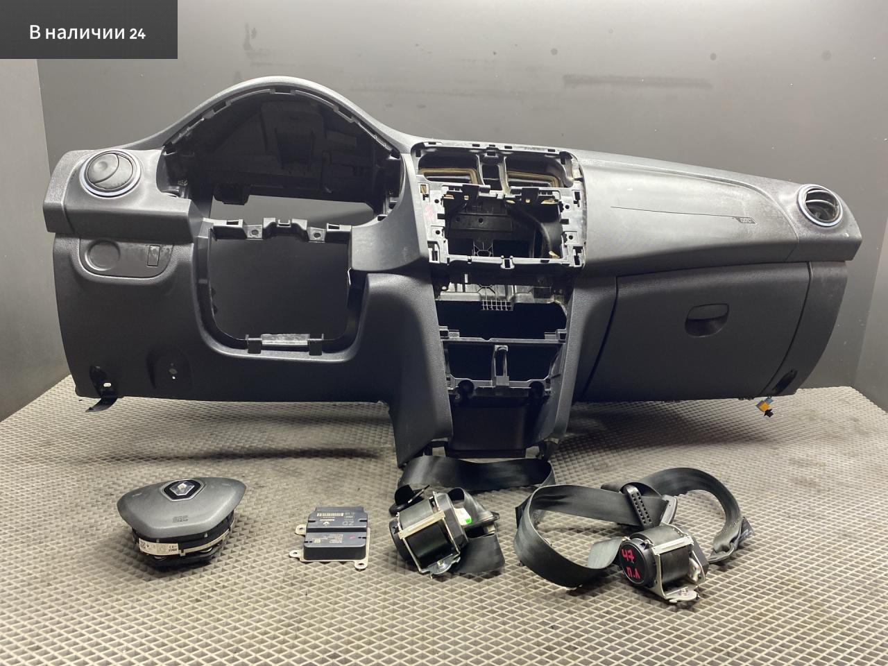 Комплект безопасности Renault Logan 2 рест. L8 2020 в комплект входит: торпедо с подушкой безопасности пассажира, подушка в руль, блок безопасности, ремни безопасности передние рено логан 2